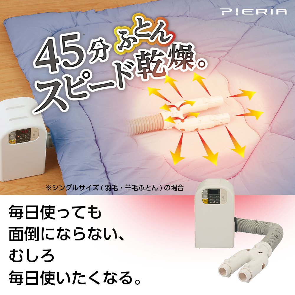 45分でスピード乾燥する事ができ、就寝前45分に準備しておけばポカポカの布団で寝ることができちゃいます。
