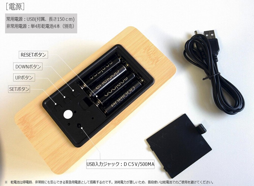 本体裏側には電池を入れる場所がありますが、非常時だけ電池を推奨しているようです。