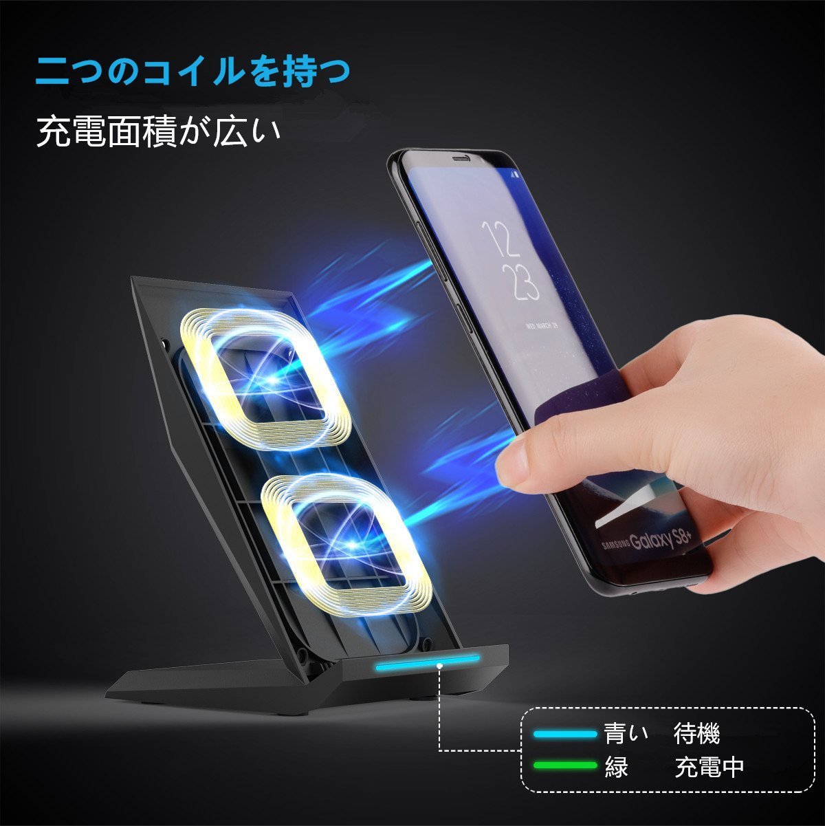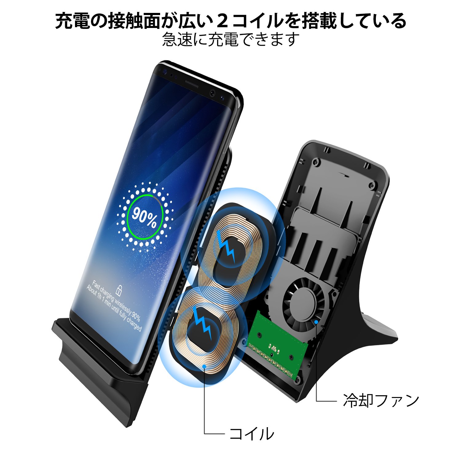 2つのコイルを搭載することにより充電可能面積が広く、縦置きでも横置きでも自由に置くことが出来ます。